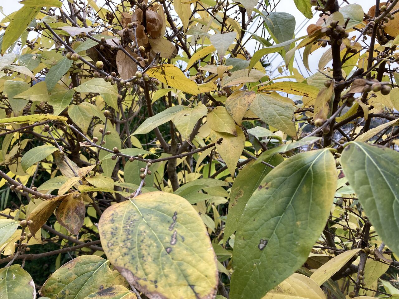 これでも足元には沢山の黄色い葉がイチョウの木のように落ちている。蝋梅は本当に世話いらず。陽当たりが大好きなのだが半日陰でも育ち、乾燥にも強い。それに病害虫も少ない。