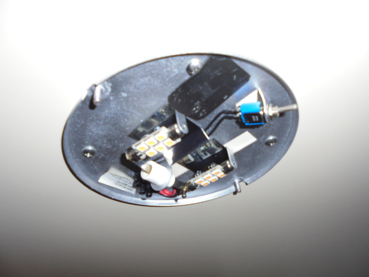 優さんの親友がLED化のためにパーツを作ってくれた。今までのバルブを外し、LEDパーツに取り換えてみたが、照度が今一つで、光が偏って見える。