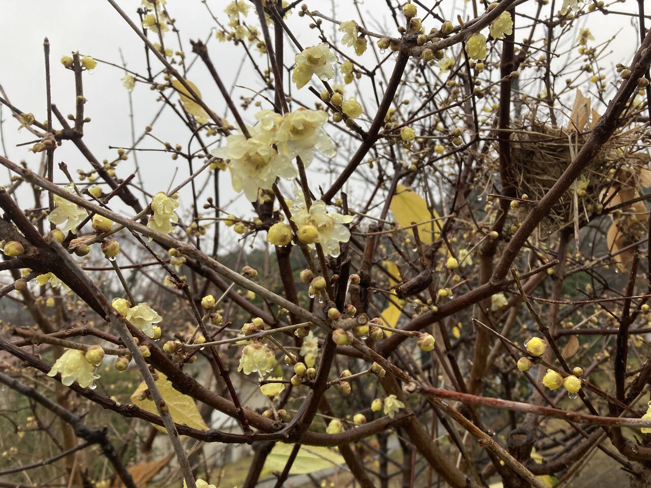 雨に濡れる蝋梅