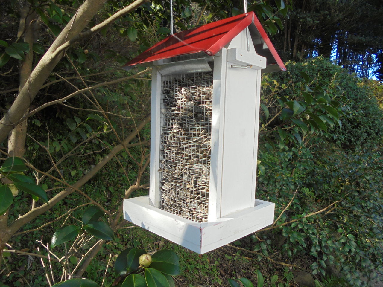 スズメが少なくなっているということと関係があるのかもしれないが、開店してから全然姿がない。しかし、1日経つと台の上が綺麗さっぱりになっている。シャッターチャンスがなくて記録されていないのだが、実は食べているお客様が判明した。それはリスとカラス。リスはどうやっても隙をついてやって来るから手の打ちようがない。カラスは周りに棒を立てて羽があたるようにしたので来なくなった。