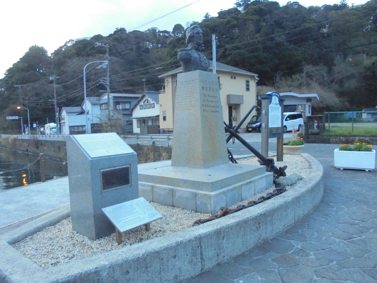 時間的に余裕があったので桟橋の上に建っているペリーの胸像とアメリカとの平和友好の灯を写真に収めた。ここには日米交流150周年記念に寄せて2004年、第43代アメリカ合衆国大統領ジョージ・ブッシュさんのメッセージとペリーの生まれ故郷であるロードアイランド州ニューポートから送られた平和友好の灯が灯っていた。