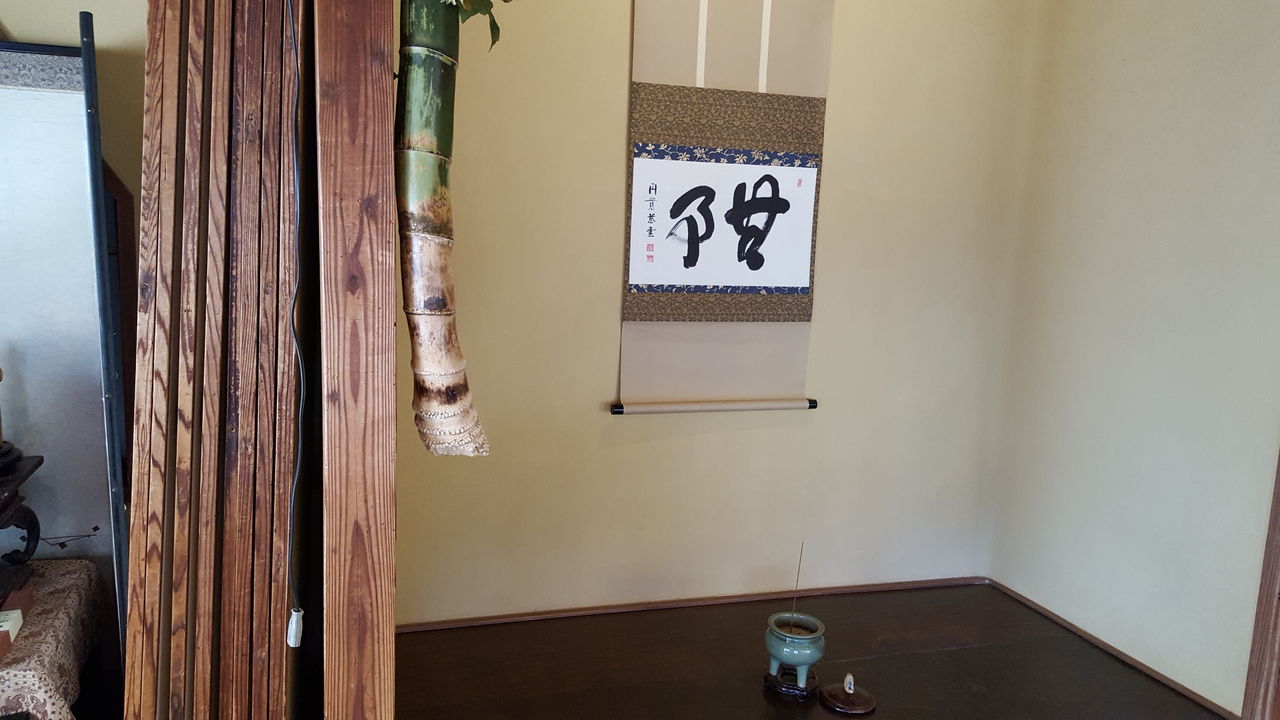 いつもお世話になっている円覚寺の龍隠庵で講和があった。以前も何度かお話を聴くチャンスがあったが、最近はチャンスがなく、迫力のある独特の話し方をすっかり忘れていた。知る人ぞ知る哲学者で東洋思想史の研究家でもある境野勝悟先生のお話。先生は神奈川県にある進学校栄光学園高等学校から早稲田大学を経て母校の栄光学園の国語の教員として教鞭を執り、その後、同校を退職し駒澤大学大学院に入りなおして東洋思想の研究をされた。現在は大磯町に「道塾慶陽館」を主宰している。今回の会場は普段お茶のお稽古をする円覚寺龍隠庵の茶室。総てを片付け折りたたみの小さな机が並べられ、20数人が受講した。テーマは「茶禅一味」。身近な題材で禅の心とお茶についてお話いただいた。一所懸命理解しようと頑張ったがもともと不勉強なのでそうは簡単に理解できよう筈もない。消化不良については先生の著書で総復習。会場の床には住職が保管庫から探しだし、前円覚寺管長の軸が飾られた。年の瀬に相応しい「無事」と書かれている。この軸をみて今年1年を振り返るのも面白い。