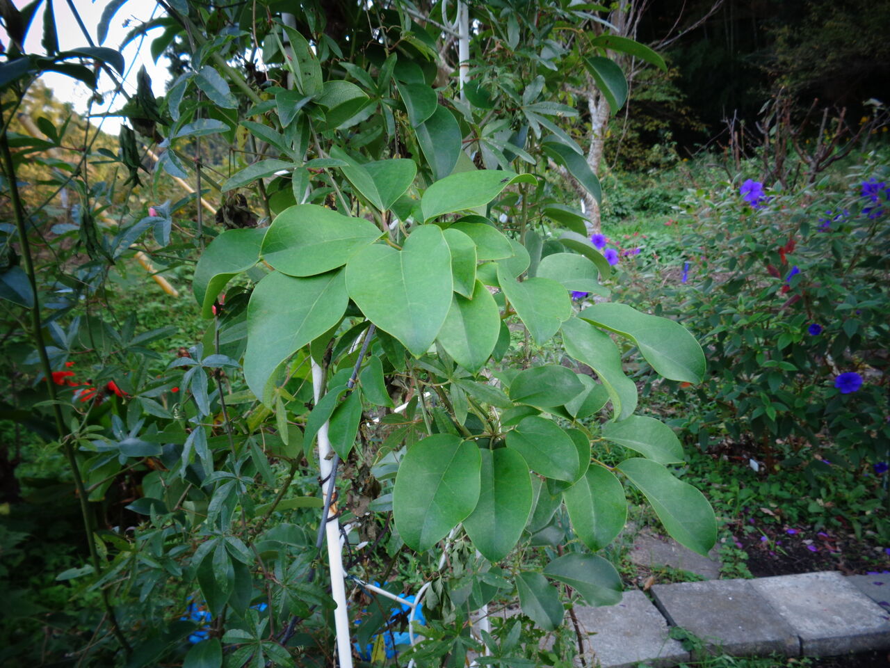 この伝説の果物、残念だが、今年は秋になっても実が成らない。もう暫く様子を見てみたい。ひょっとすると時計草との同居がいけないのかもしれないので。