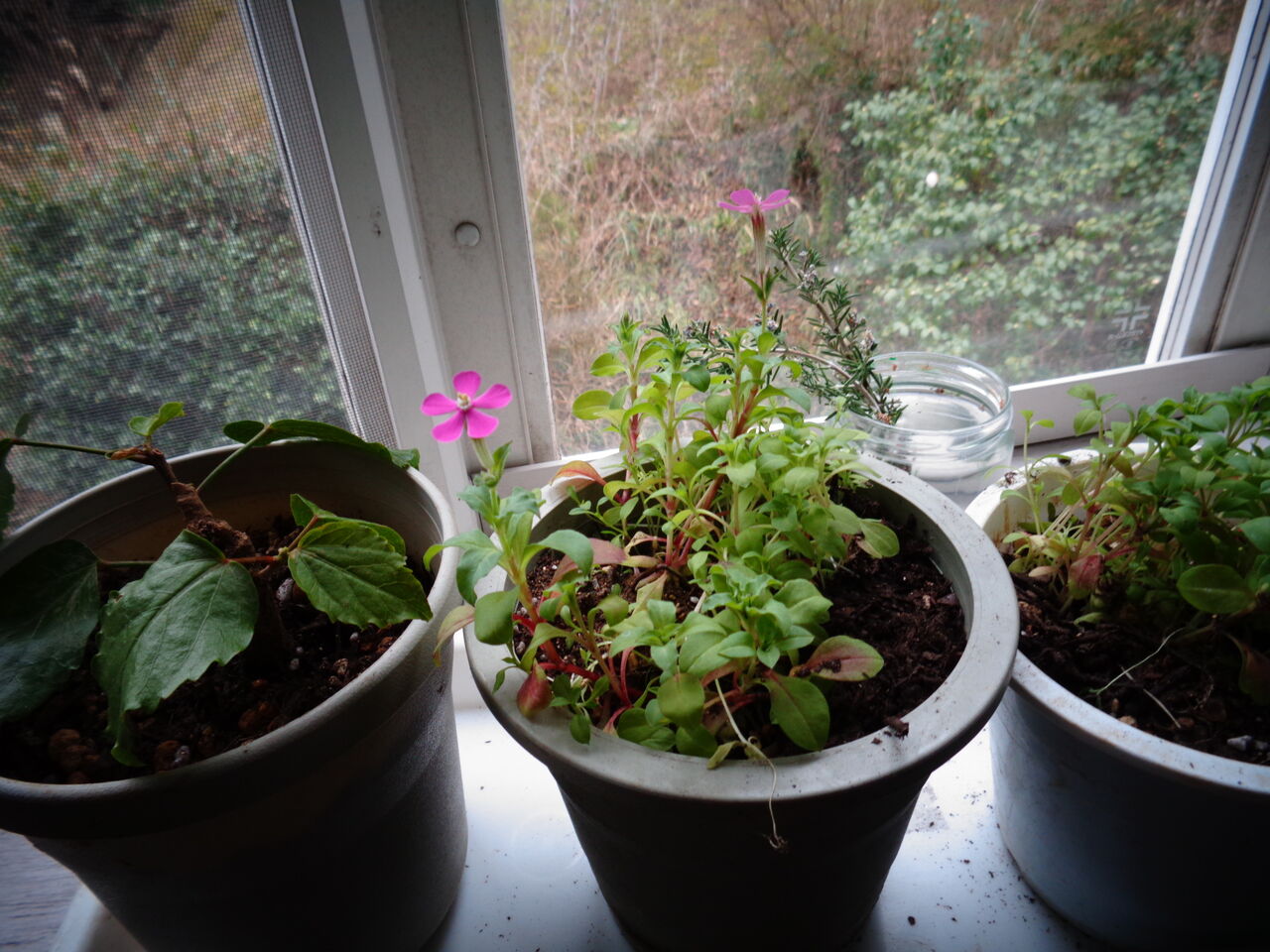 ツルコザクラの種を蒔いて、芽を出させて地植えしようと思っていたら、タイミングを逸してしまい、今のこの時期に地植えもできないので、大きなプランターから植木鉢に移し替え、目下リハビリ中。可愛いピンクのコザクラが咲き出してリハビリ出窓が明るくなってきた。今年のツルコザクラは鉢で育てることになりそう。