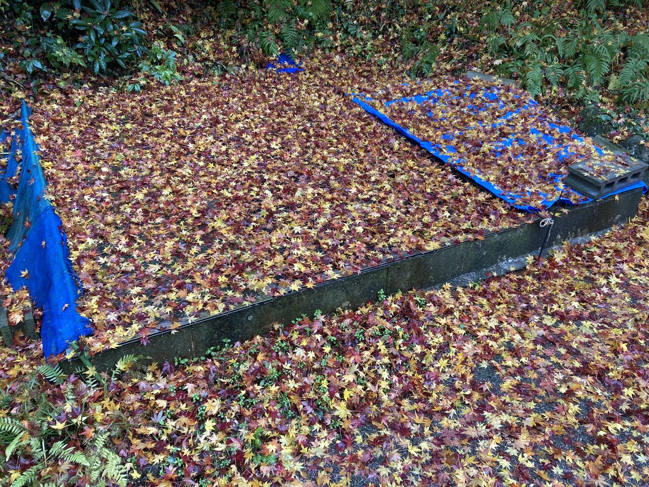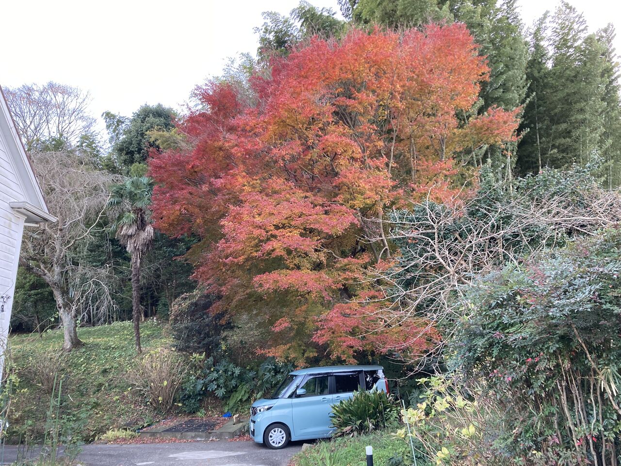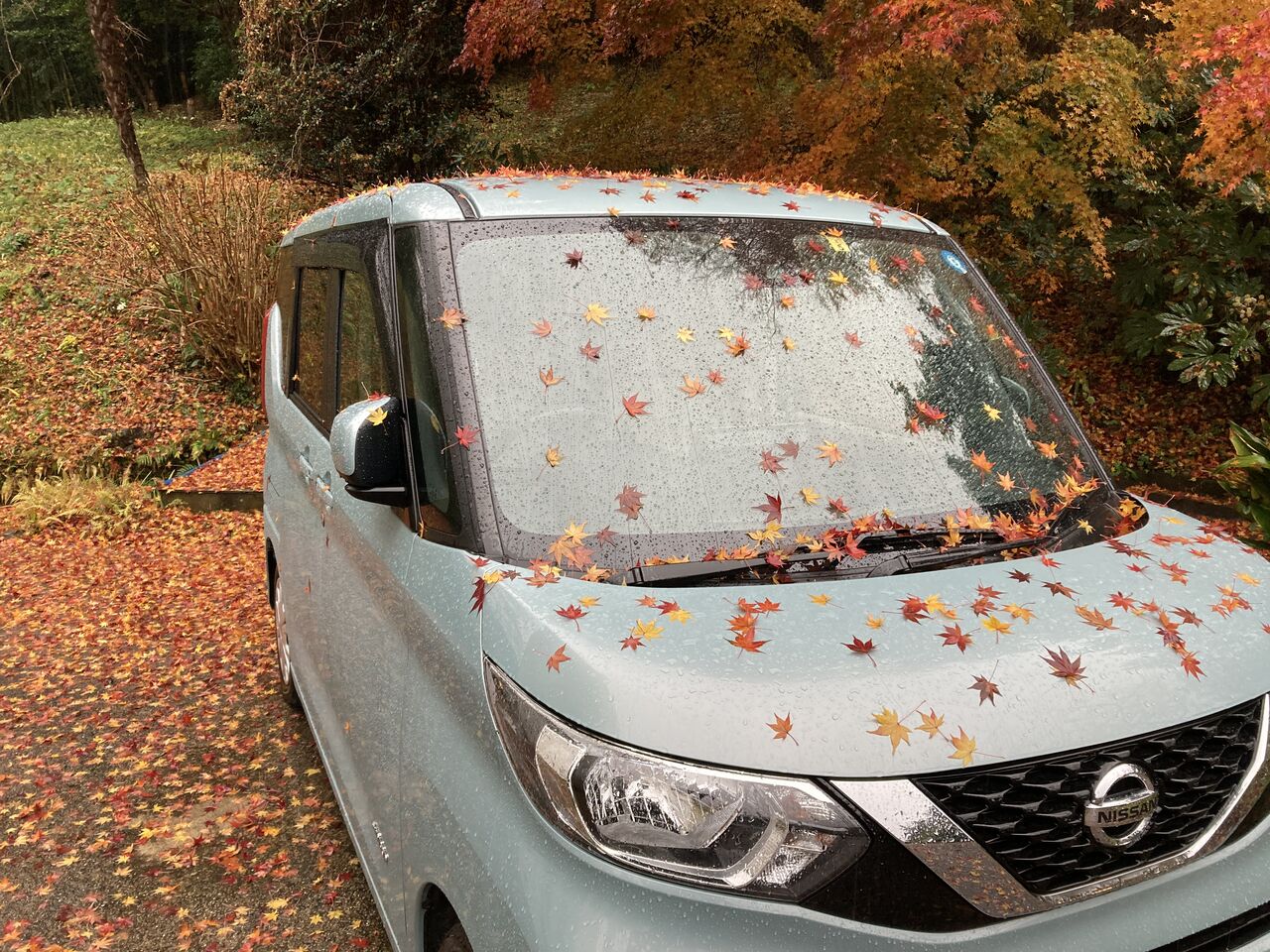 クリスマスイブイブに紅葉宣言をしたばかり。一夜にして全く別の風景を見ることになった。落ち葉がモミジの木の下という下にべったり張り付き、お天気が良くならなければ到底掃くこともできない。始末が悪いは葉落ち葉の上を歩くと靴の底に落ち葉がべったりくっつく。外を歩いたら底を奇麗に払わないと家の中に入れない。地味な車のボディー全体が枯葉でラッピングしたよう。