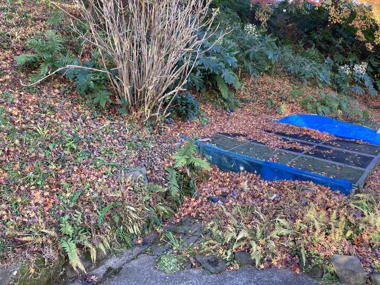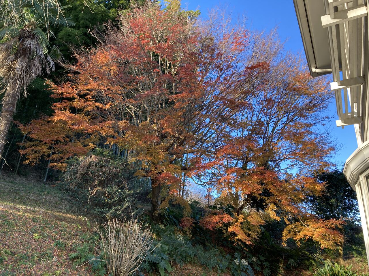 こんなタイミングで我が家のモミジがやっと本格的に紅葉した。以前も少し早めに紅葉したモミジの葉がパラパラ落ちてきて、地面を汚していたから落ち葉がなくなる時期を夢見ていたが、今度は風が吹くとこれだけの葉が一度に落ちて来そうだから一大事。大みそかまでには一大イベントが終了するか?