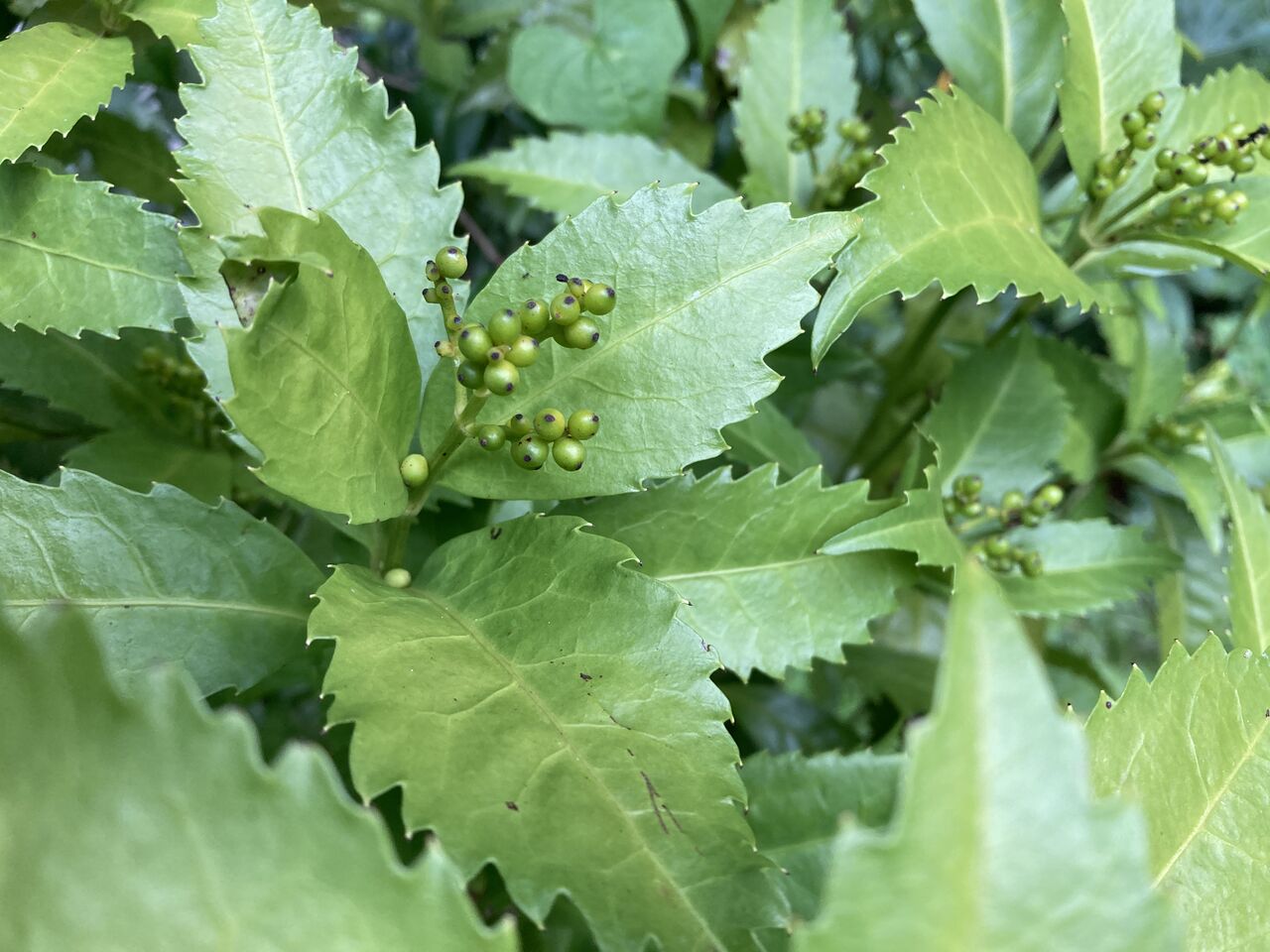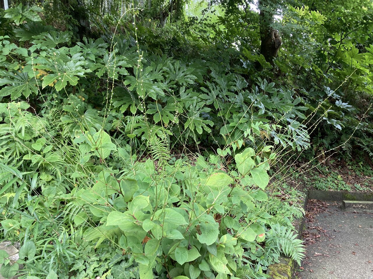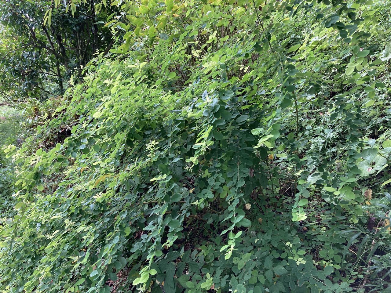萩にもいろいろ種類があるらしく、僕が手に入れたものは「ダルマハギ」とネームプレートにあった。そのネームプレートの場所からご覧のような葉が出て来て傾斜地を飾っている。萩だと思うがちょっと違うようにも見えて不安だ。