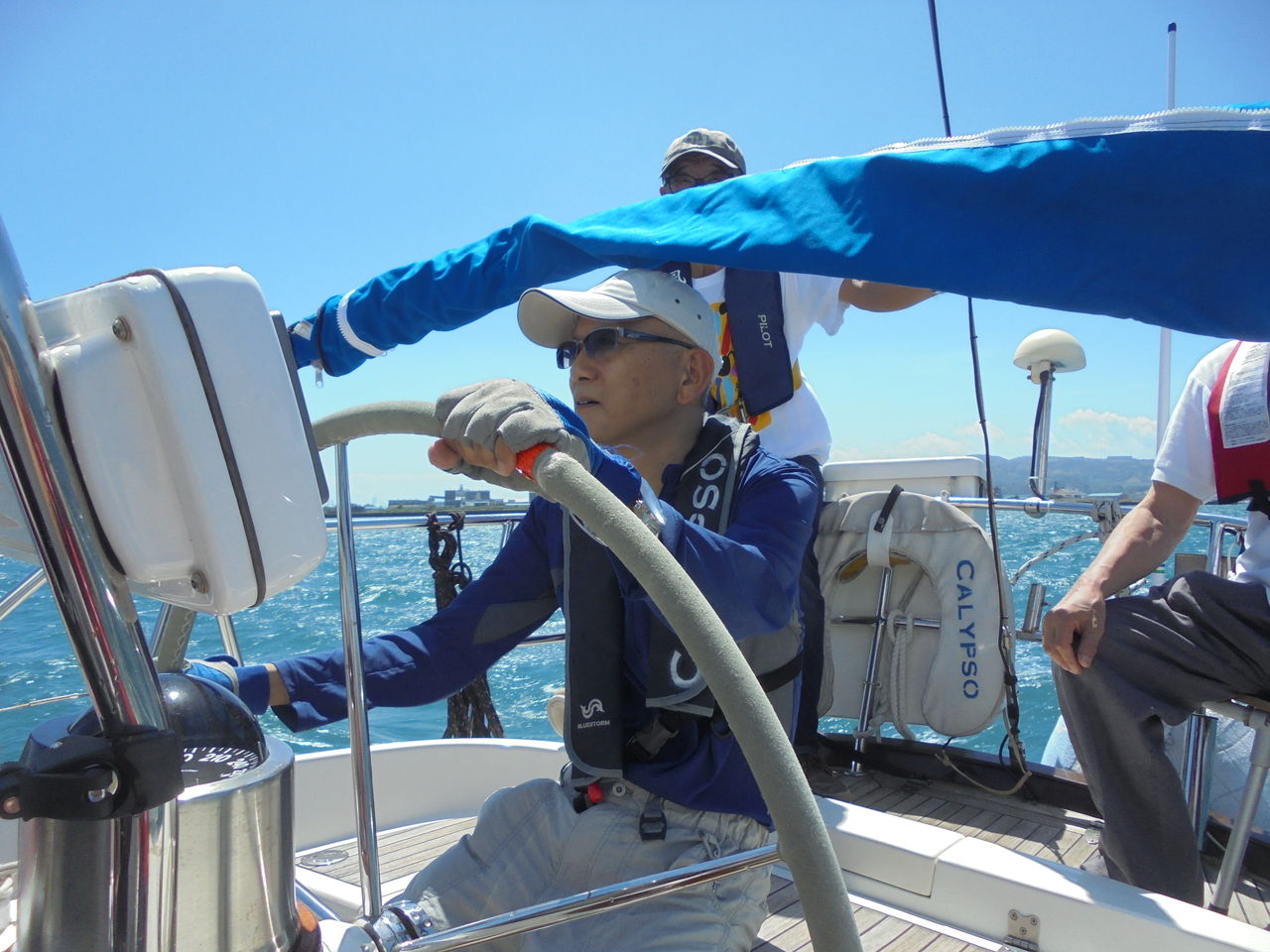 港から暫くはおとなしい駿河湾だった。もともと「CALPSO」のコックピットはビミニトップが付いていて、スプレー除けも設備されているので総てをセットすれば全くスプレー(しぶき)を浴びずに走ることが出来る。しかし、スプレーが殆ど上がらなかったので日除けの天井だけセットしていた。それが駿河湾の中間にさしかかると波が2mから3m近く上がりだし、いきなり大きな波がザブ~ン。オーナーも林先生も頭から水浸し。僕だけが濡れなかった。それから慌てて手造りのスプレー除けをセットしたのでその後はセーフ。