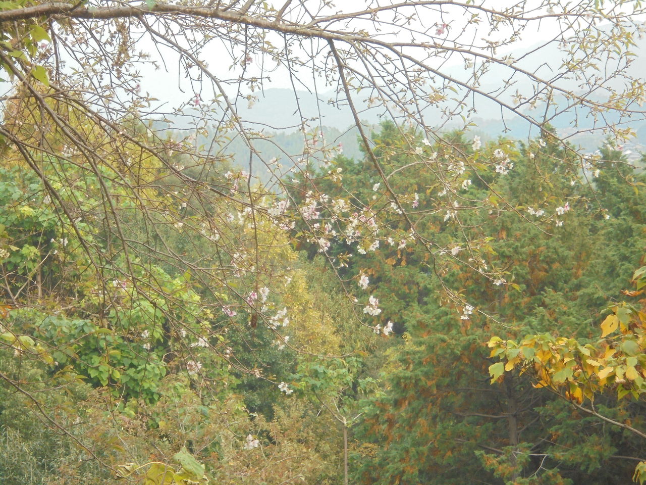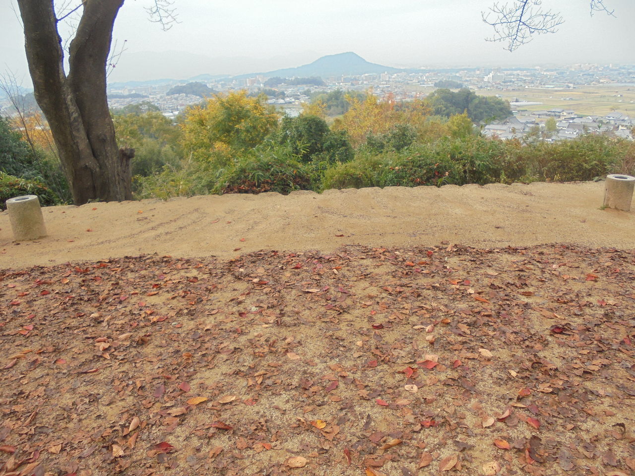 石舞台を堪能してからまた西側に向かい橿原神宮駅を目指した。最後は橿原神宮駅から近鉄で京都に出て夕方の新幹線に乗るのだが、その前に駅前にある樫原神宮を見ようということになった。その途中で立ち寄ったのがこの甘樫地区。明日香村が一望できる山の頂上が展望台となっている。展望台と言っても何か設備があるわけではなかった。観光地の展望台というと茶店があり有料の望遠鏡が並んだりするところが殆どだが、ここは小高い丘。自然でなかなか良い。自転車は駐輪場に置いて20分ほど上り坂を歩いた。坂道にはこの地独特の植物が生えていて植物園のよう。展望台には落ち葉が一面に敷き詰められたように落ちていたが、周囲だけは掃き寄せられていた。ここからの明日香村の田園風景が何とも素晴らしかった。高層ビルがない風景を見るのは久しぶりだ。