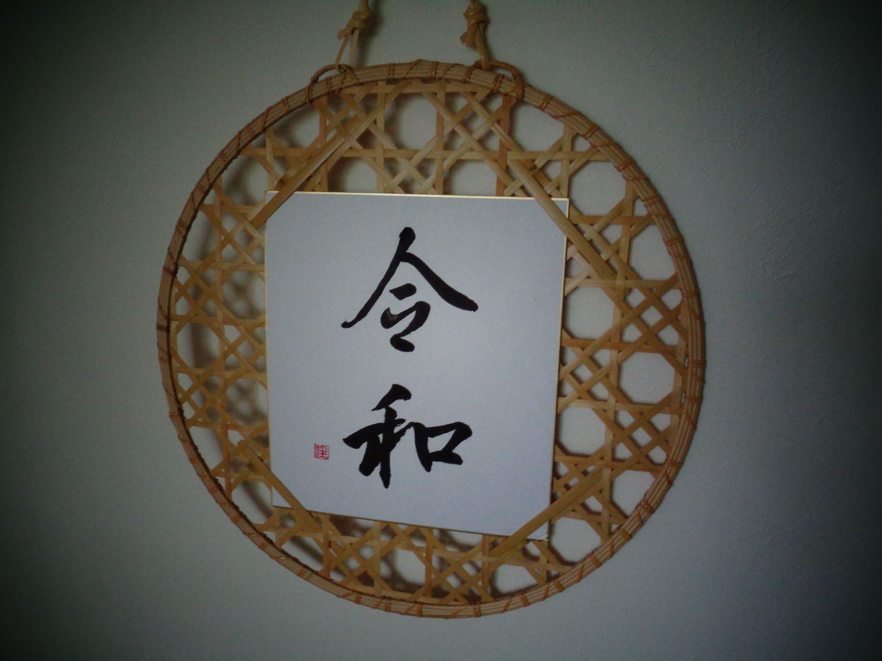 それがこの作品。作品の名前は「八ッ目網色紙かけ」。わざわざ知り合いの書家さんに色紙を書いてもらってその作品ごと頂戴した。ちょうど今の時期には涼しげで令和の時代に相応しい作品になった。