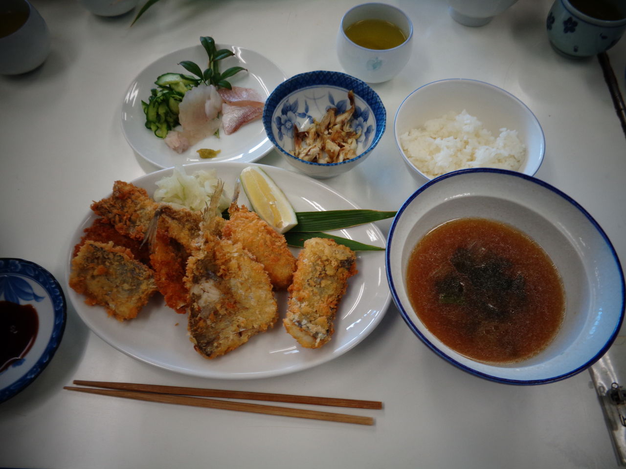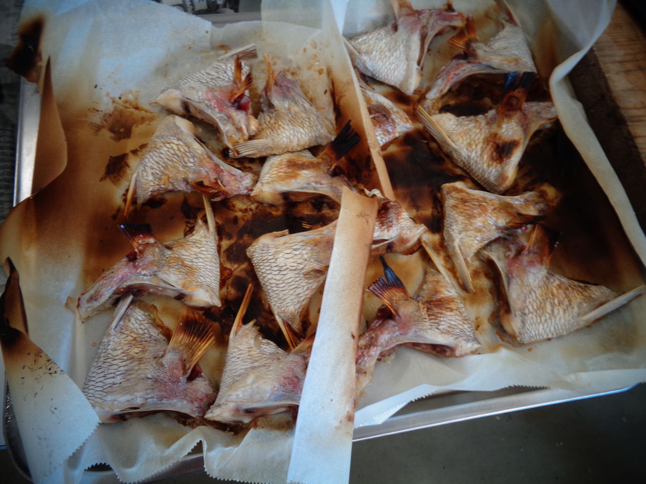 10月はお魚の料理教室「あじの会」は会場の確保がうまくいって、月初と月末の2回が予約できた。いつも教室開催には早朝先生が市場に行って予算にみあった材料を仕入れてくる。夏場の品薄時にはいろいろと苦労の連続らしいが、うまく行った時には先生も元気が良い。いつも市場で仕事をしてから教室にくるから先生が来られる時間は教室の始まる少し前が多い。僕たちは準備があるから早めに行き、段取りをつけたら2階にある喫茶店でお茶を飲むのが習慣になった。それがどうしたことか今回は先生がもう到着していた。先生が早く来ているので仲間たちが「どうしたんですか?」と当然ながら先生に質問することになるのだが、初めは黙っていた先生が「1時間間違えた!」と白状した。以前はよく、教室のある日を忘れて、遅れてスタートしたことがあったので、幹事が前日に必ず確認の電話を入れる決まりになった。普通だったらとっくに教室が崩壊している筈なのだが・・・、我々の先生は実に憎めない人の良すぎるキャラクターなのだ。今回は材料の調達がうまくいき、気分が良くなりすぎて1時間間違ったらしい。だから材料のお魚の種類と量の多いこと。太刀魚、真あじ、イシモチ、エボ鯛、小鯛、ヒラメそしていつもの天然鯛のカマ。もうこうなると食べないで家に持ち帰るお魚の多いこと。先生の贈り物なのだ。
