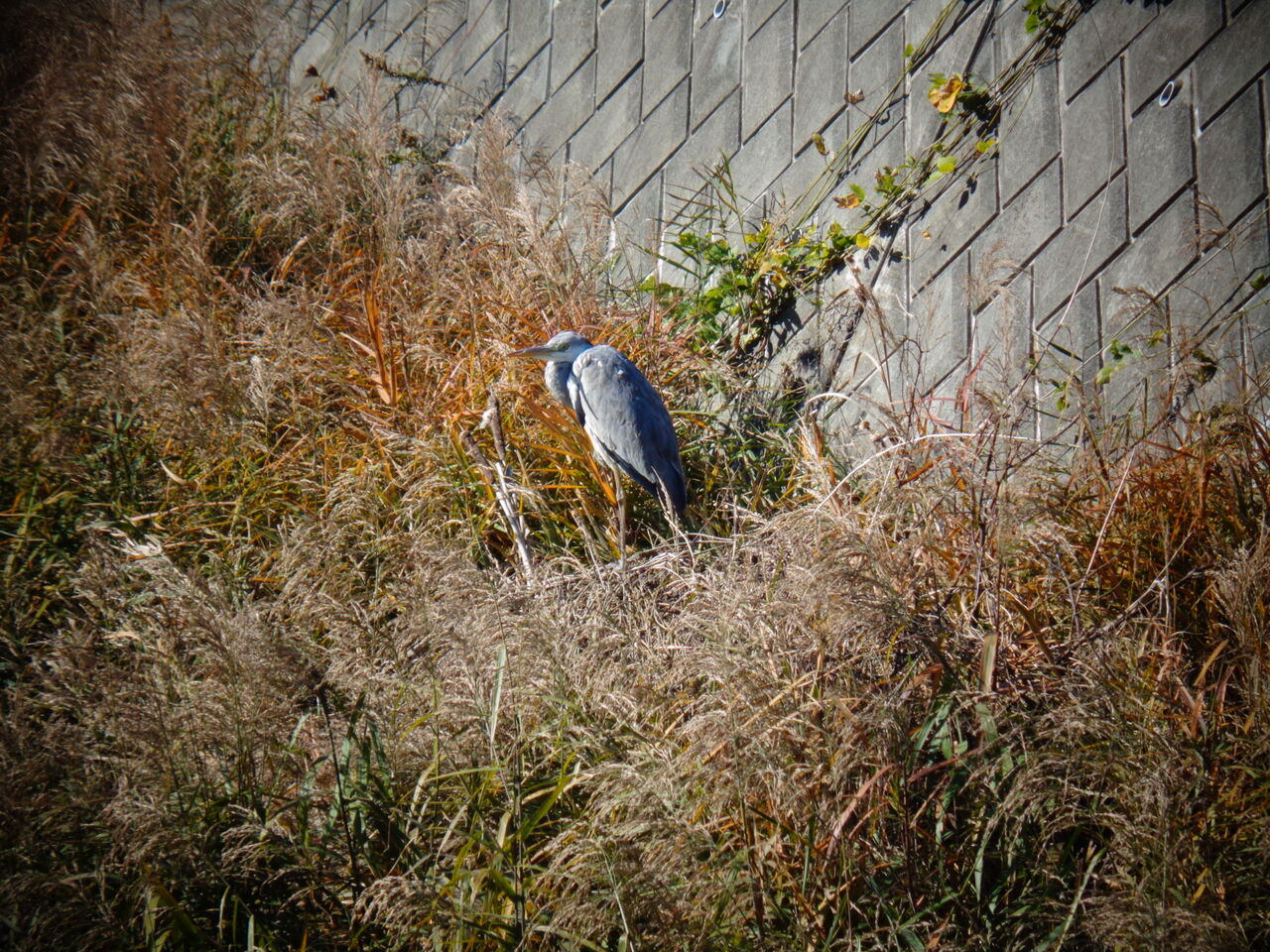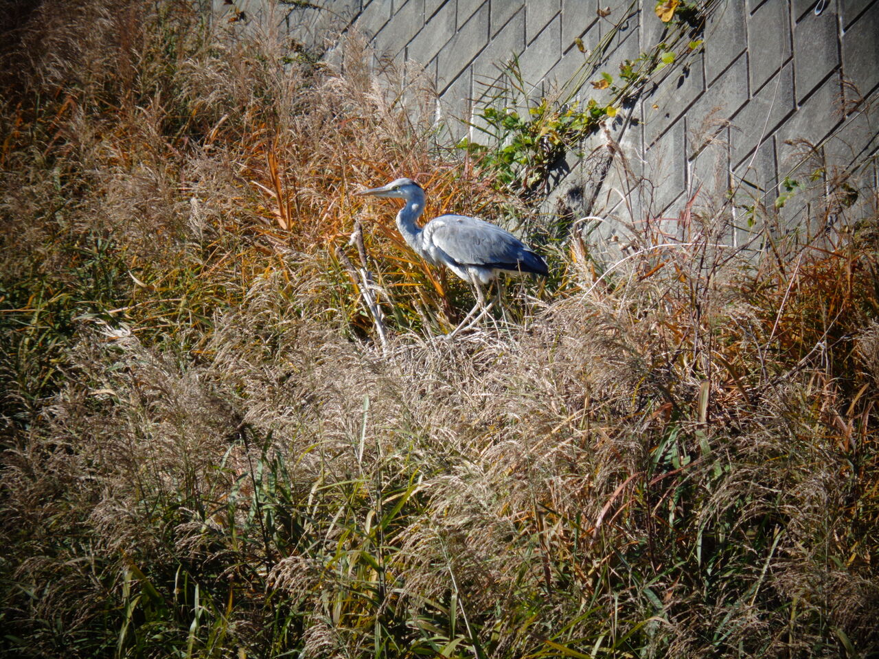 家に通じる道の横を下山川が流れている。今年も台風の度に川の水が溢れやしないかとヤキモキした。最も川の水が氾濫しても我が家はさらに20mは上にあるから危険はないのだが、メインの通路の横だから被害を出して欲しくない。台風前になると町の環境課で川の清掃をする。上流から流れてくるごみや泥をきれいにしてくれるのだ。さらに川に生えている植物をきれいに刈り込む。しかし、きれいになっているのはほんの一時。ちょっと時間が経過するとまたまたまるで畑のように植物が勢いよく育つ。これが鳥たちには絶好のサンクチュアリになる。たまたま川の横を通過したら、大きなサギが草の中にとまっていた。細くなって流れている川の中にいる魚やカエル、ハタネズミなどを日がな一日待っている。川の横で僕が小さなカメラを出して構えたら、かなり離れているのに警戒して身構えたと思ったら立ち上がって飛び立ってしまった。大きさ、色からいって