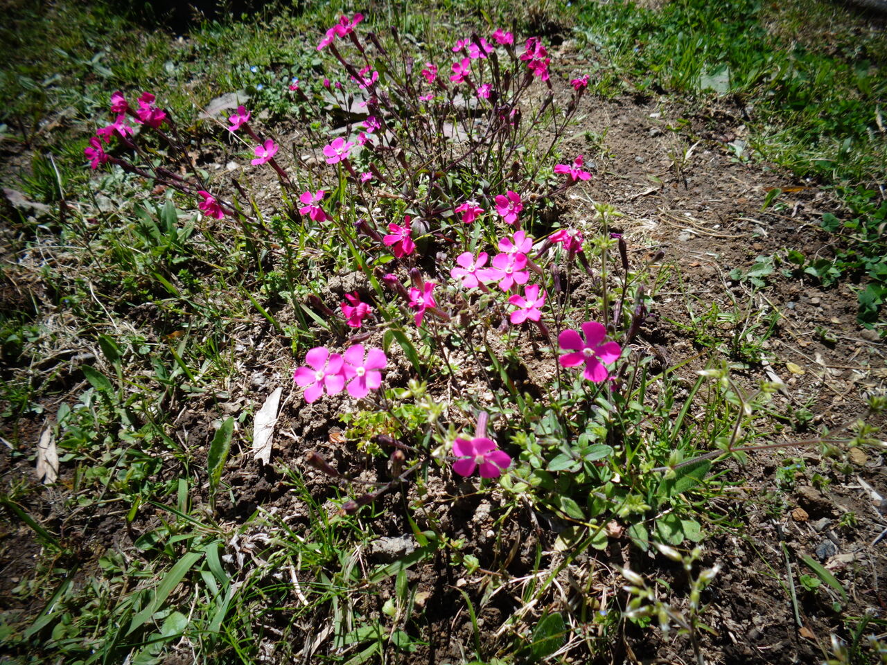 今の時期我が家にはピンクの小さな花が2種類咲いている。一つは昨年親友から種を沢山いただいて、咲いたツルコザクラ。昨年はかなり計画的に種を植えたのでツルコザクラのサークルが出来た。ところが咲いた後の種の収集に失敗して、今年は咲いたには咲いたのだが、あちこちに散乱してしまった。今年は種の採取を丁寧にやって来年に備えたいと今から意気込んでいる。