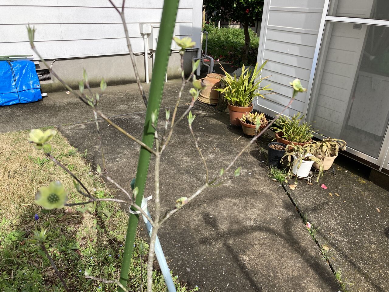 数年前に植えたハナミズキ。時間が経ってもなかなか成長せず、未だに1m足らずの身長だ。