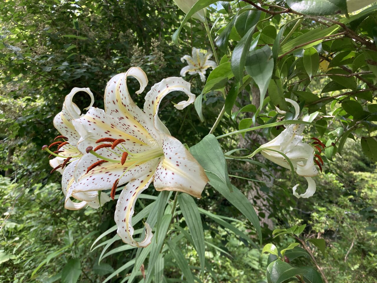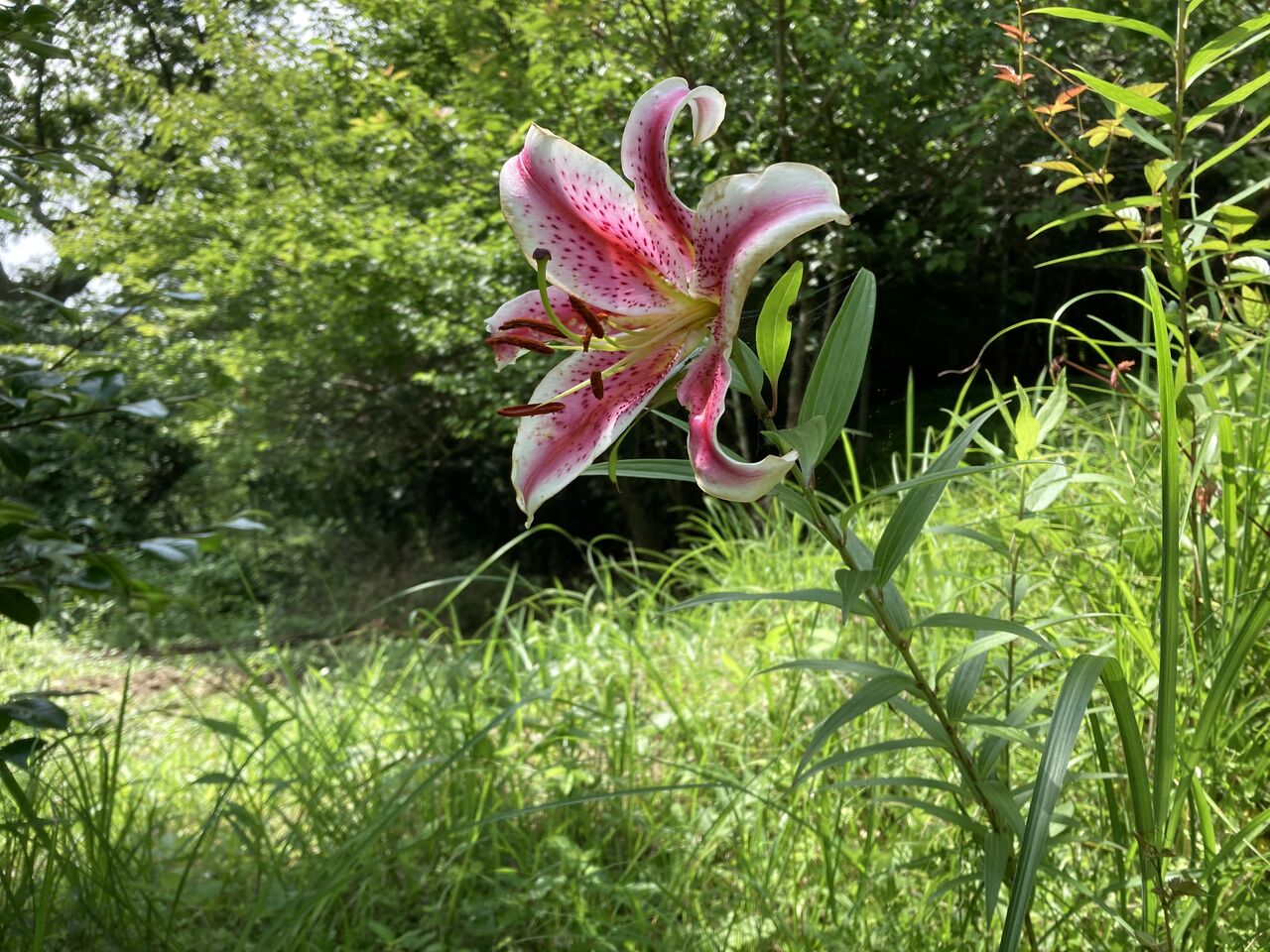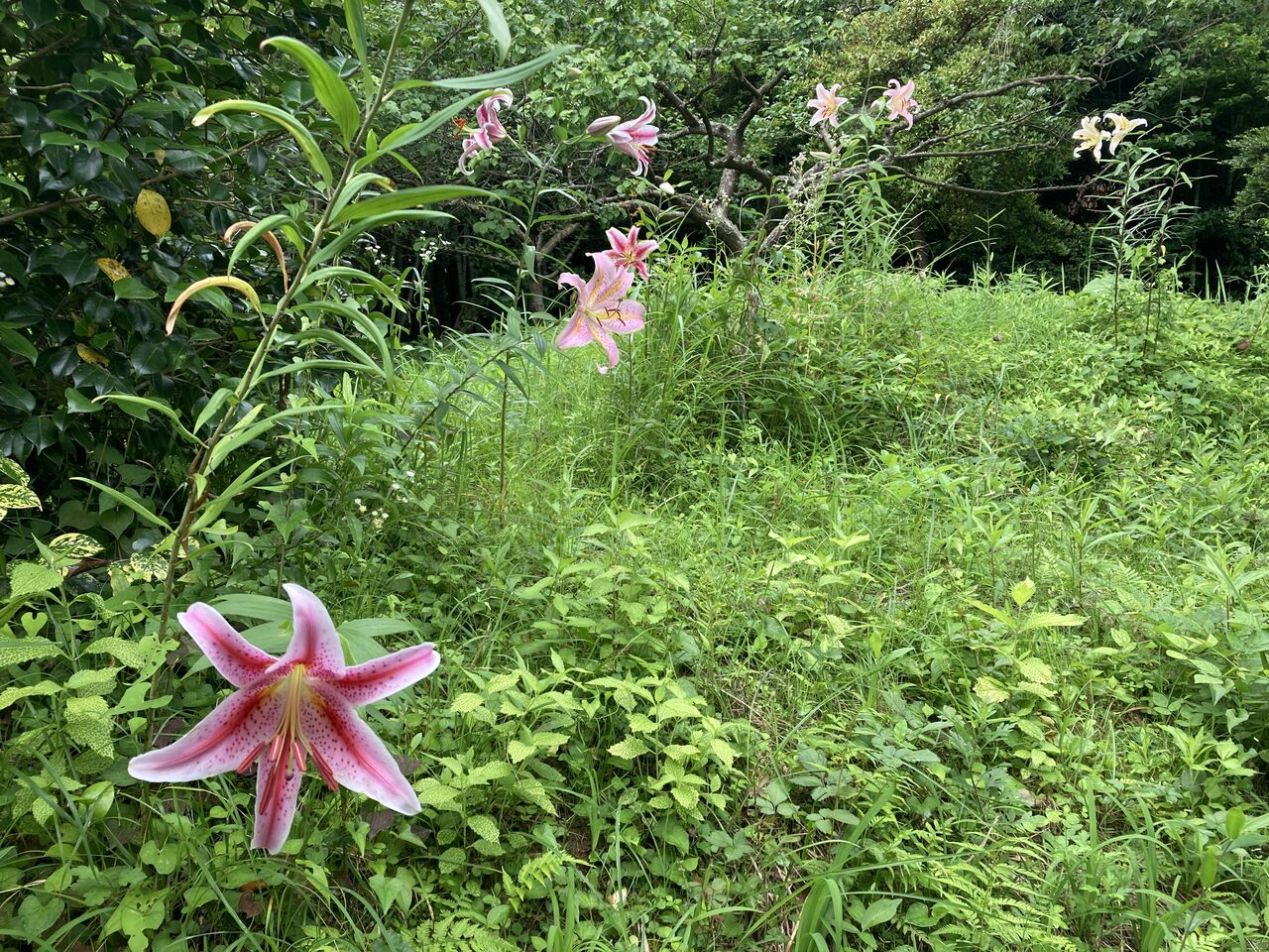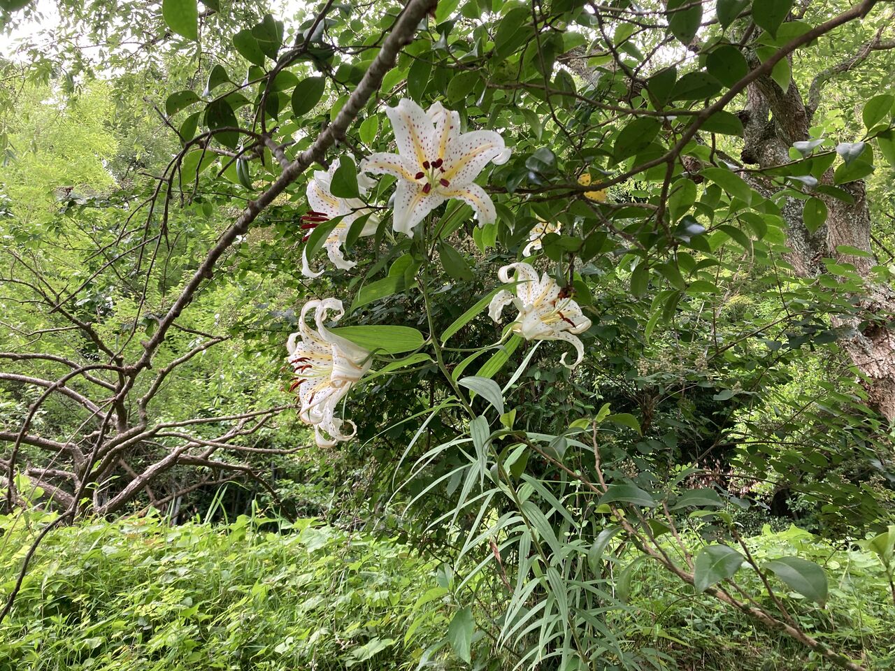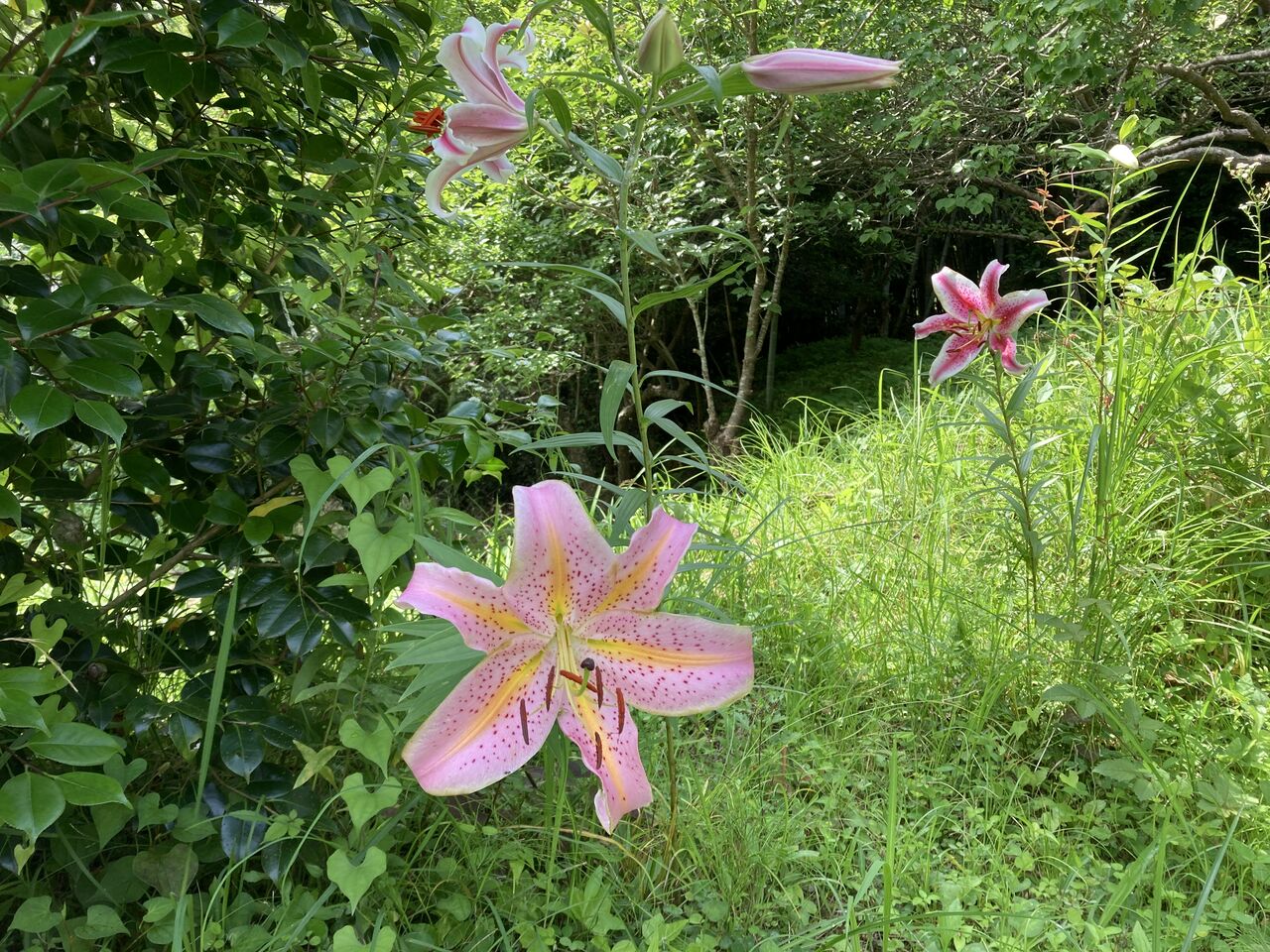毎年斜面地に10数本の百合が咲き、我が家の山百合祭りが始まる。