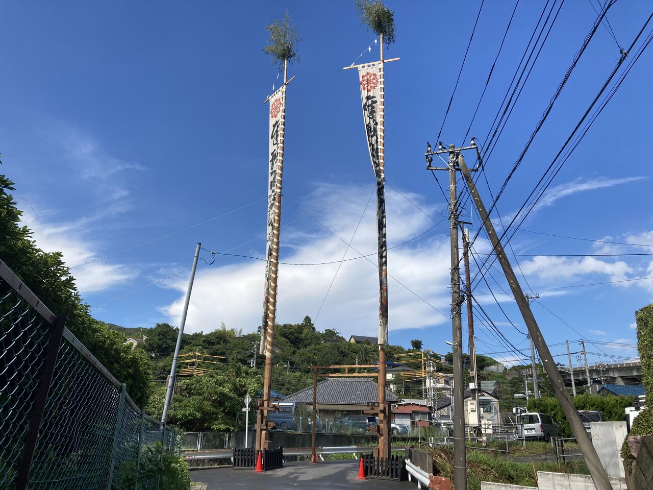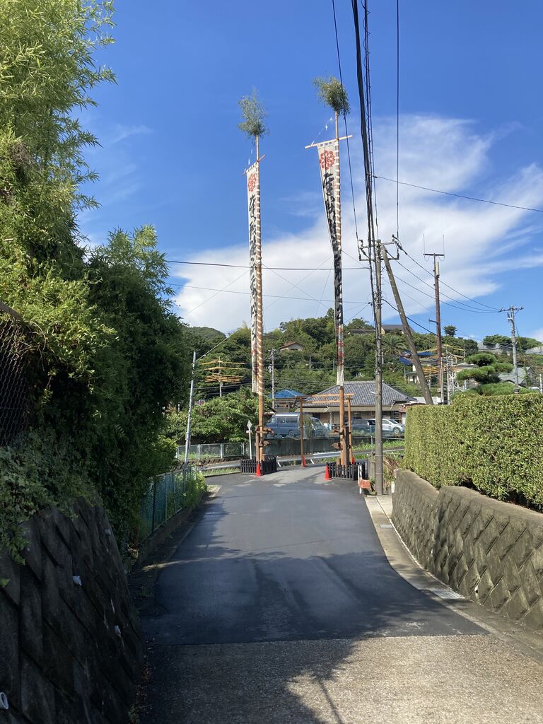 コロナで中断していたわが地域の夏祭りが4年ぶりで復活した。人口が少なく新住民が多いために余り盛大な感じはしない。お神輿も大人用と子供用の2基。この2基が町内を一周する。その通路の入口にご覧のような幟が立てられる。この幟だけは伝統があり、町内の若い人たちが地元の古老に見守られながら立てる。高さが30m近くあるのでなかなか大変な作業になる。若かりし頃は当番になったりしたが最近は無罪放免。今回も立て終わってから覗きに行ったが、作業が終了したら誰も人の姿が見えなかった。お神輿はこの幟を通過し、我が家の前を通って不動滝、神明社まで向かう。写真(下)後ろに見える横浜横須賀道路の橋げたの下には公園がある。お祭りの日にはこの公園が盆踊りで大賑わいする。