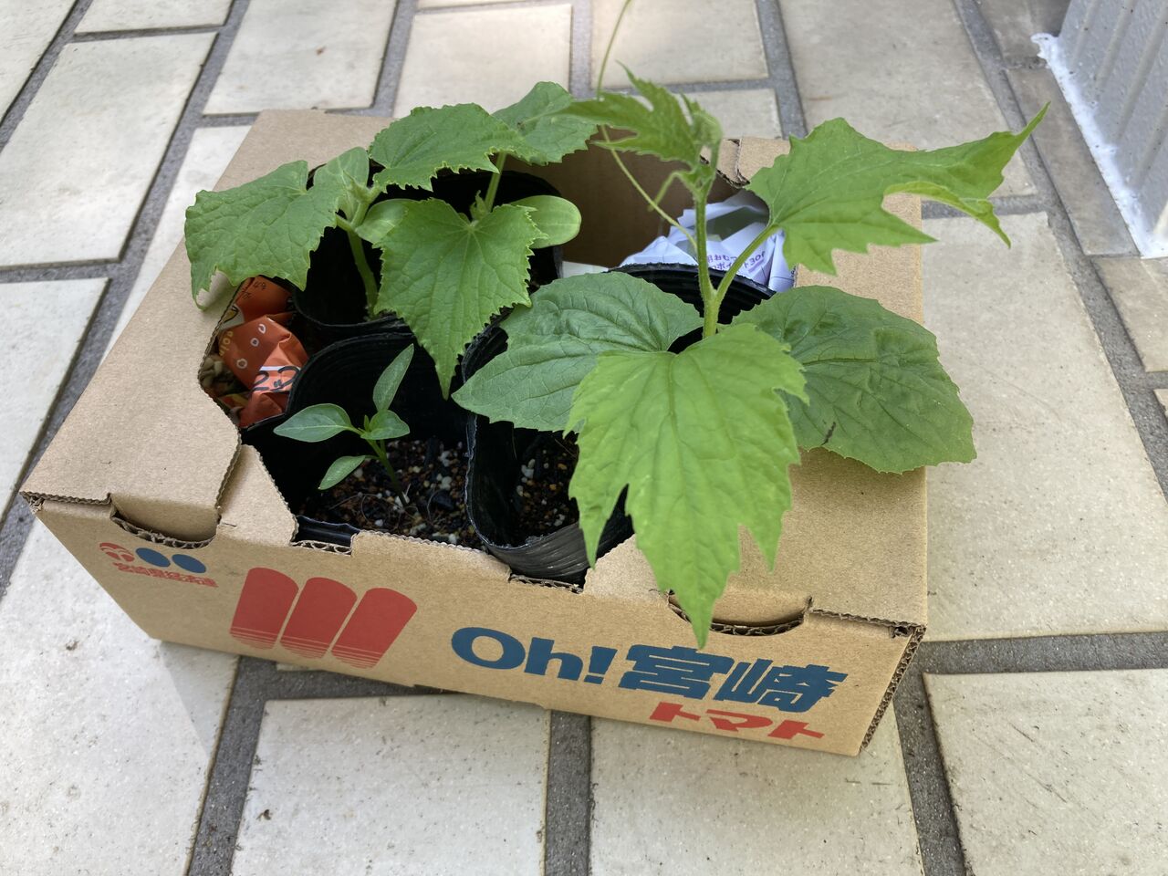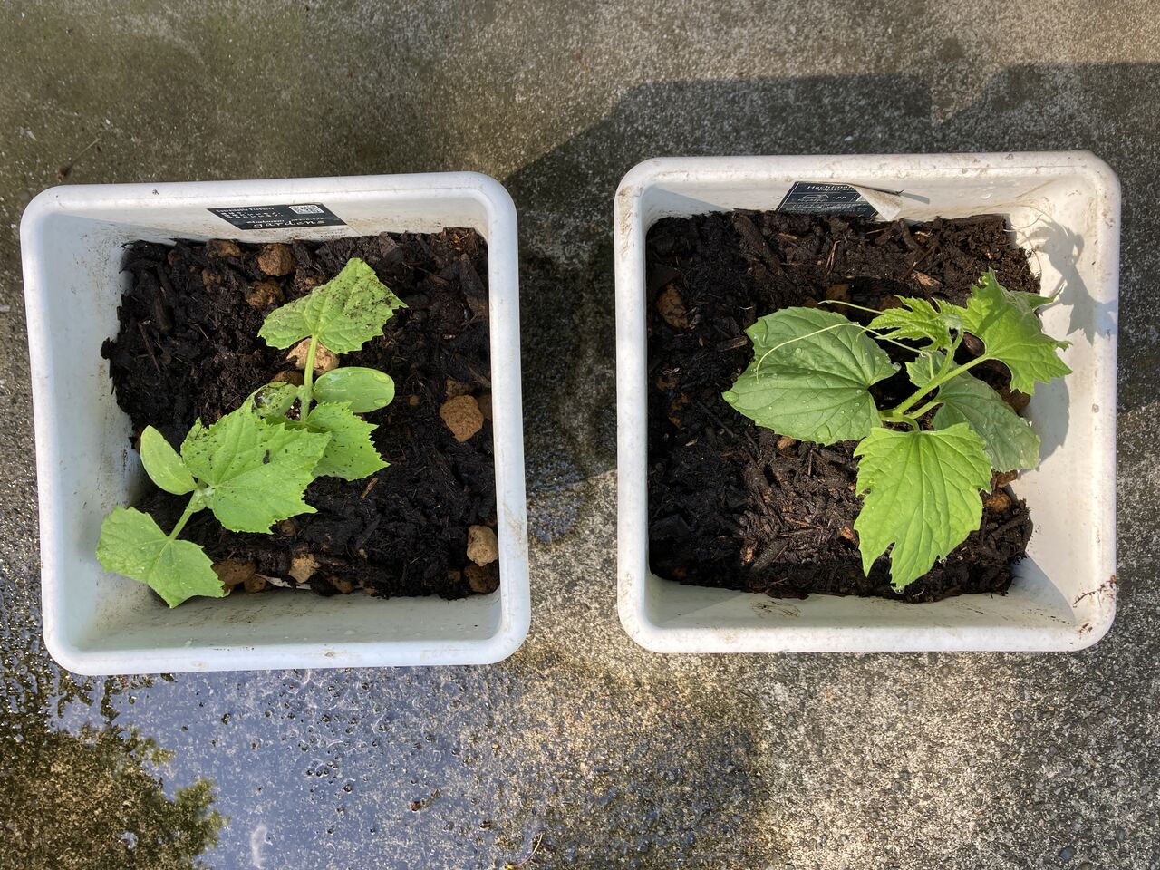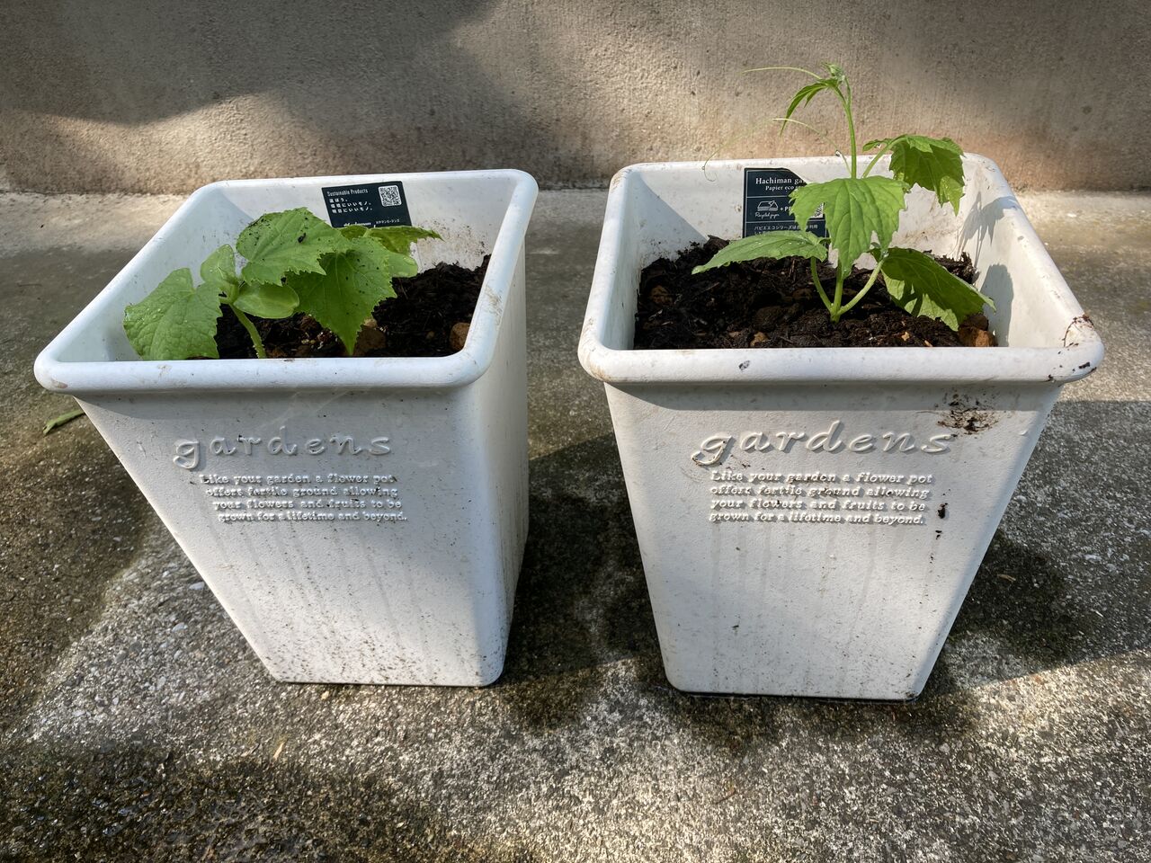 その友達が昨年の日除けづくりを知って、苗をプレゼントしてくれた。苗は3種類。蔓物のゴーヤ、キュウリそして韓国唐辛子。早速、植木鉢に植え替えた。