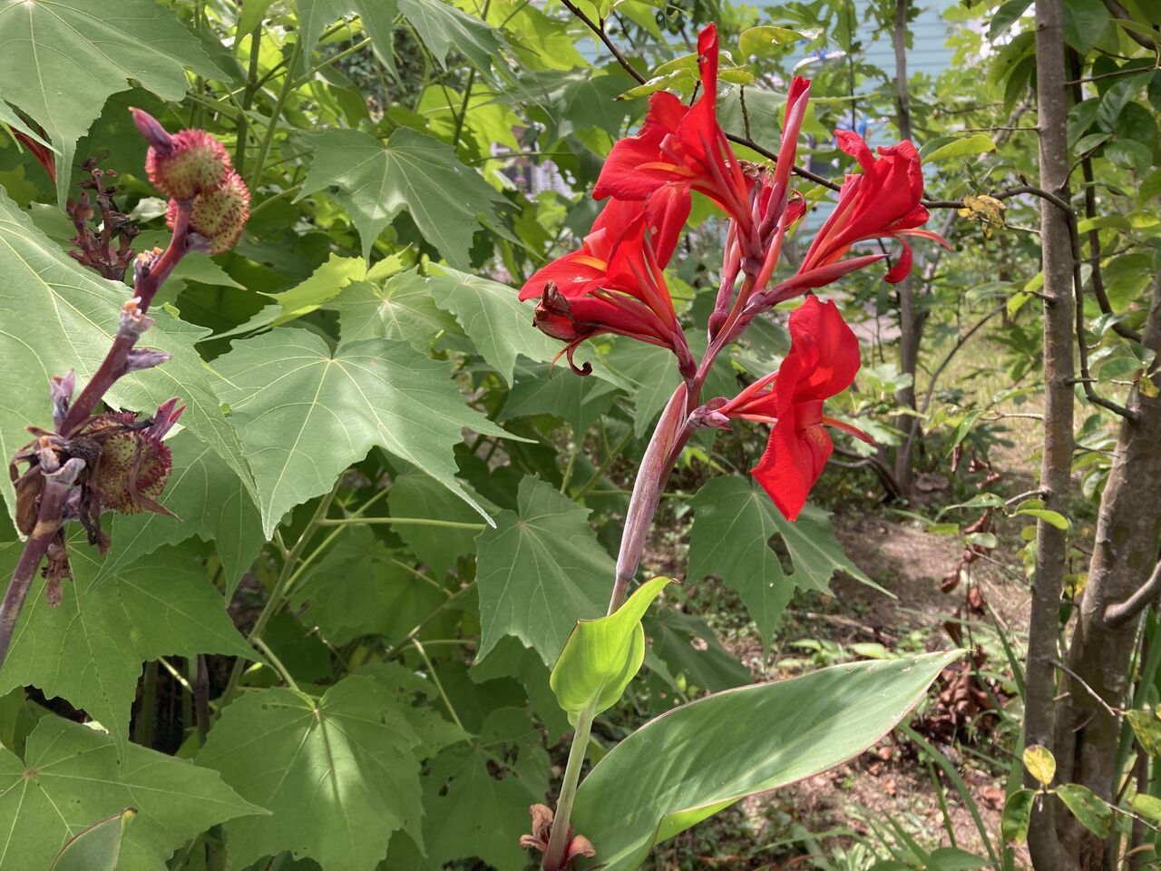 こんな暑さの中、一体どんな花が咲いているのか見てみたら、ムクゲ、カンナ、トケイソウ、メドーセージ、夏の薔薇などだ。あまりの暑さの中で花を見せてくれているだけで申し訳ないと思う。酷暑の中の花たちにせめてお礼の印に水をプレゼントした。カンカン照りの時に水をかけると、お湯をかけるのと同じだと聞いたことがあるので、陽が落ちたあと心を込めて。