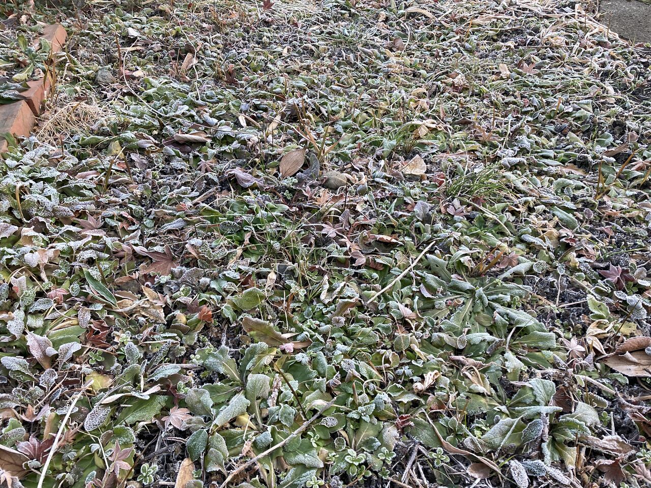 しかし、昨日初めて霜が降りた。一年中緑の葉をつけているシャスターデージーが寒そうに霜を被ってゲンナリしている。本格的な霜が降りたら、カリカリに凍ってもっと険しい表情になるだろう。