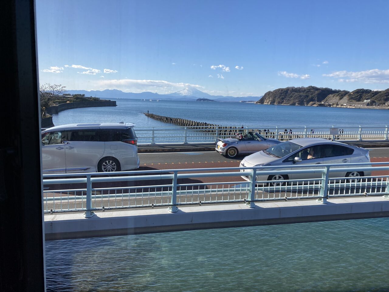 見た時にはかなり富士山が大きく見えたのですが、実際に写真に撮ってみるとかなり遠くに見えてします。でも、相模湾から見る富士山もとても素敵です。