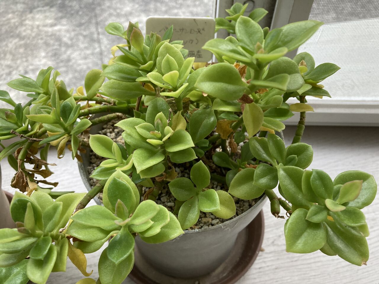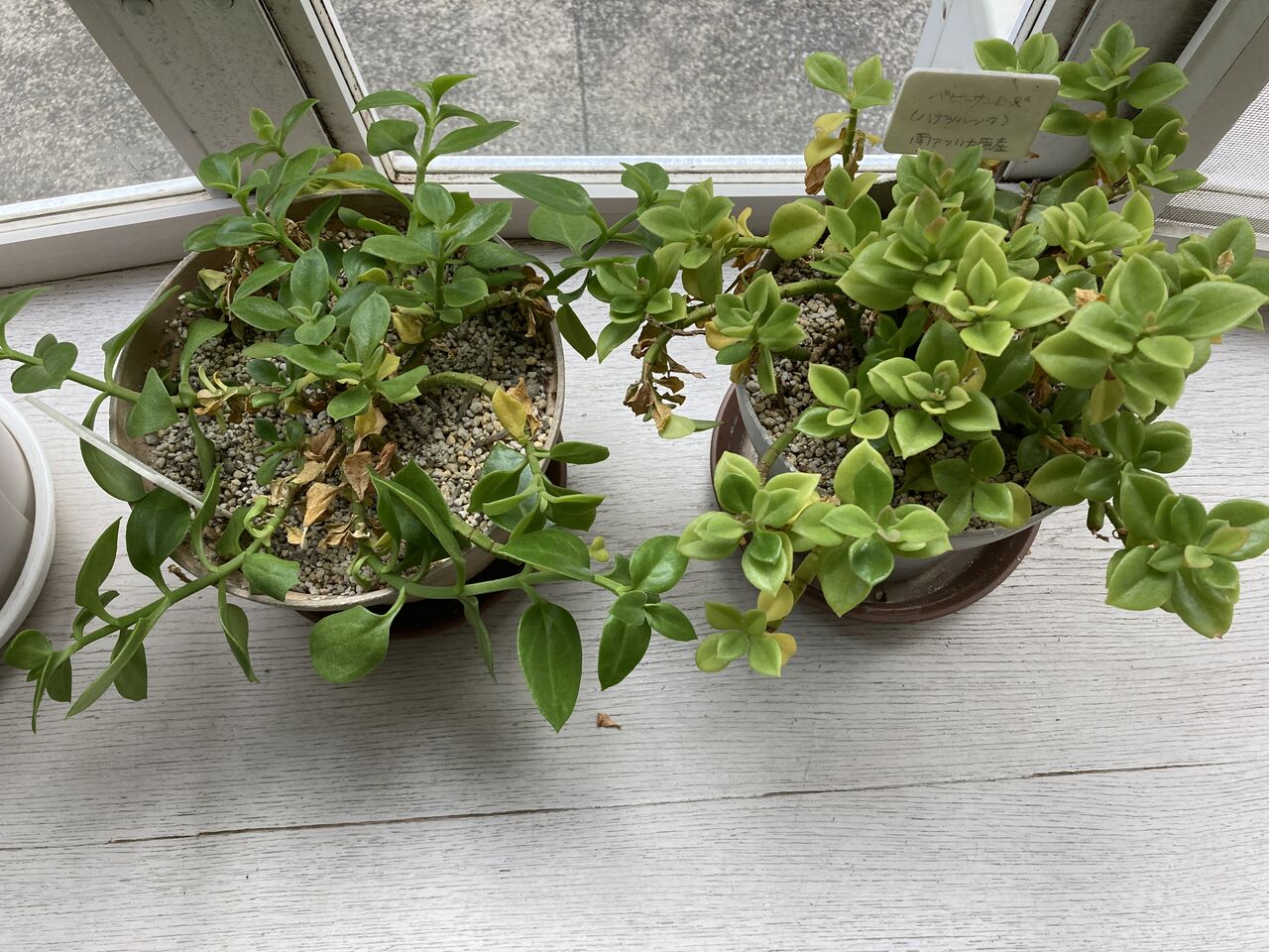 そんな中、我が家の出窓に置いてある2鉢は寒さに負けず、ふっくらとした葉が元気に育っている。名前は「ベビーサンローズ」。またの名を「アプテニア」。サンローズと聞いただけでとても暖かそうな薔薇を想像するが、ピンクの可愛い花は薔薇のようには見えない。一時期は大きな鉢で育てていたのだが、茎がどんどん伸びて鉢の下に垂れ下がるのでハンギングにするか、鉢を高めに置こうと鉢を小さめにした。サンがついているので太陽ギンギラを好むと思ったら意外に涼しがりや。