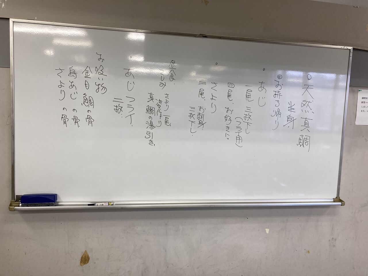 何せ最近は全てのお魚の値段が高騰し、限られた予算の中で工夫に工夫をしなければ教室が開催出来ない。今回も会費2000円で昼食を食べ、昼食で食べた以上のお魚を自宅に持ち帰った。