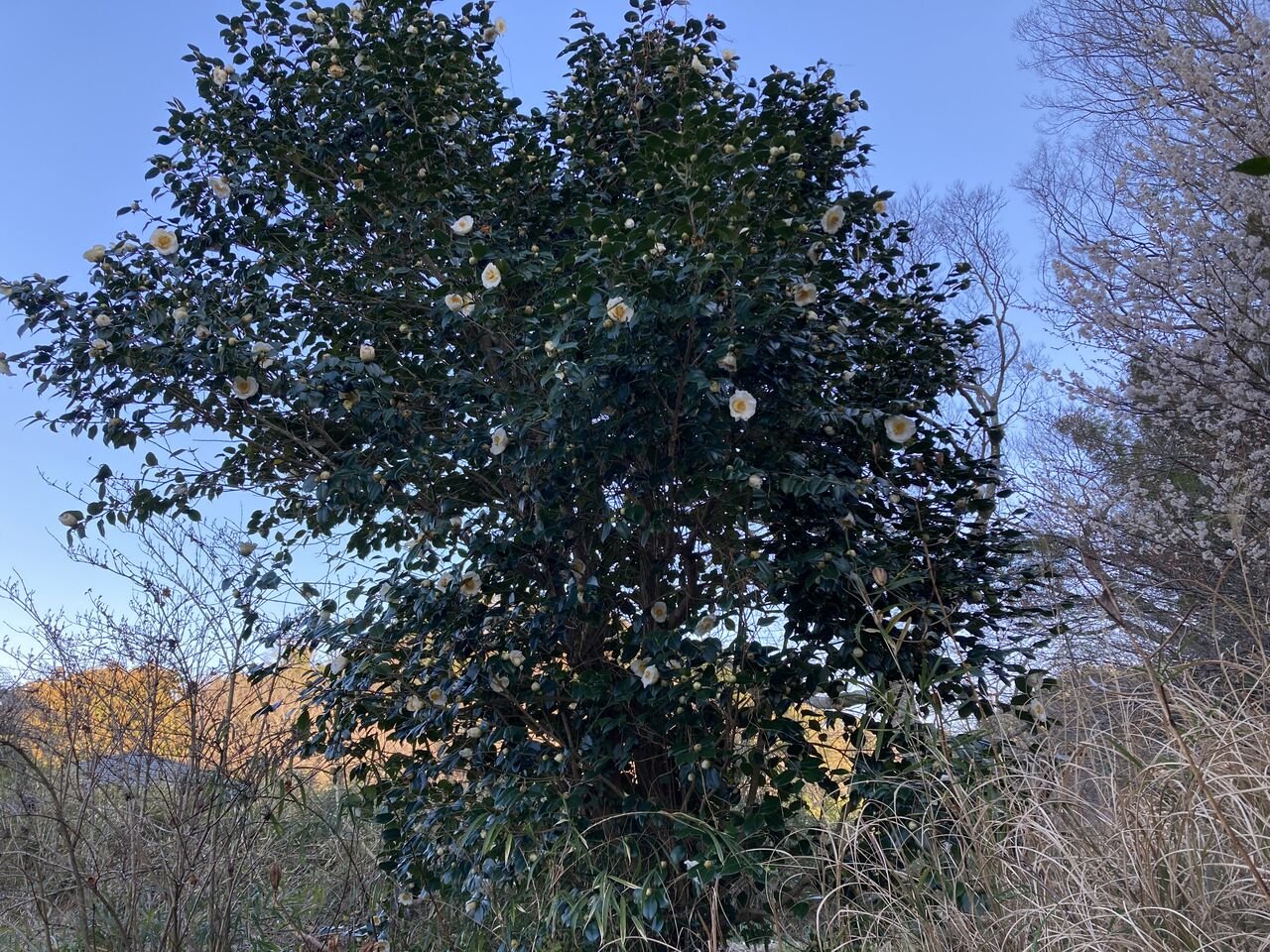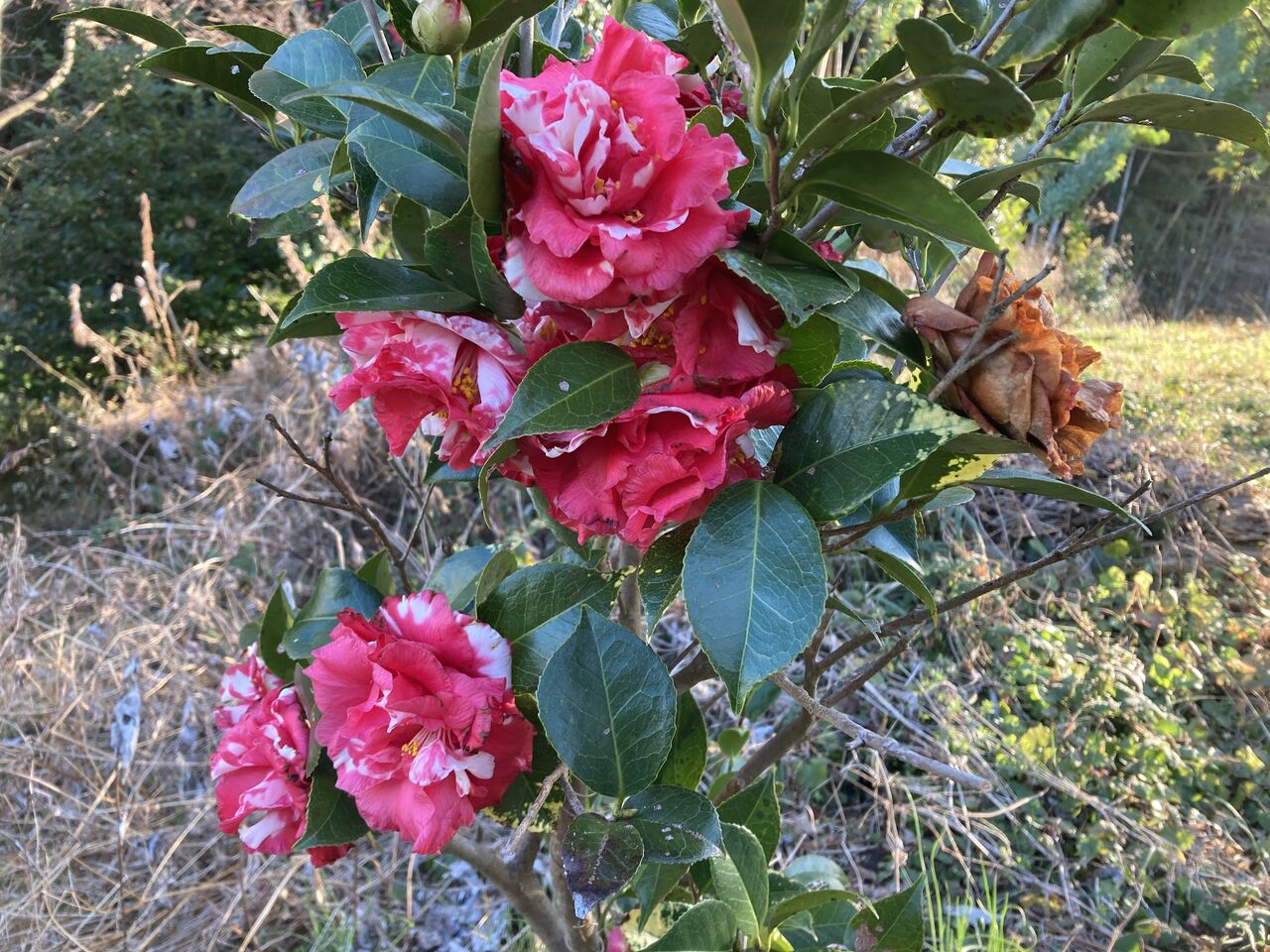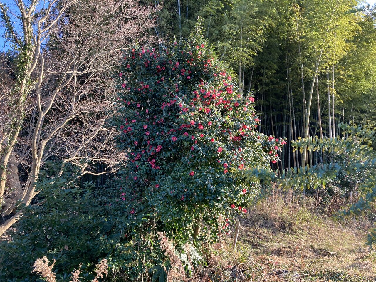 相当昔から生えていて、年齢不詳。何せやりっ放しだったから数えようがない。人間に例えたらきっと後期高齢者に違いない。ヤブツバキはヤブツバキでまとまっているのだが、まとまっている割には花の咲く時期がばらついている。陽当たり具合なのか栄養状態なのか・・・?