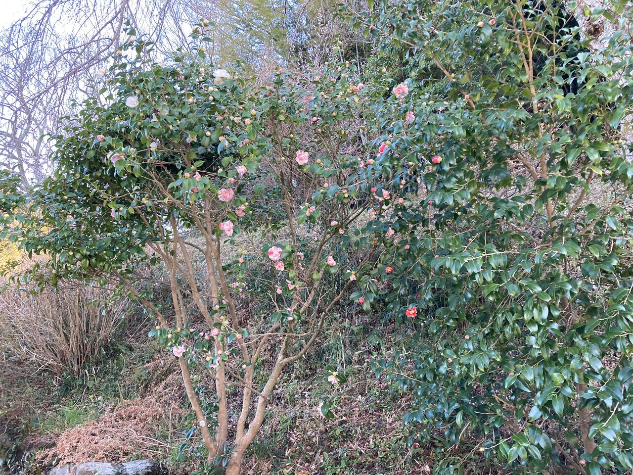 我が家の西側は半日陰地域。ここにヤブツバキが何本か植えてある。