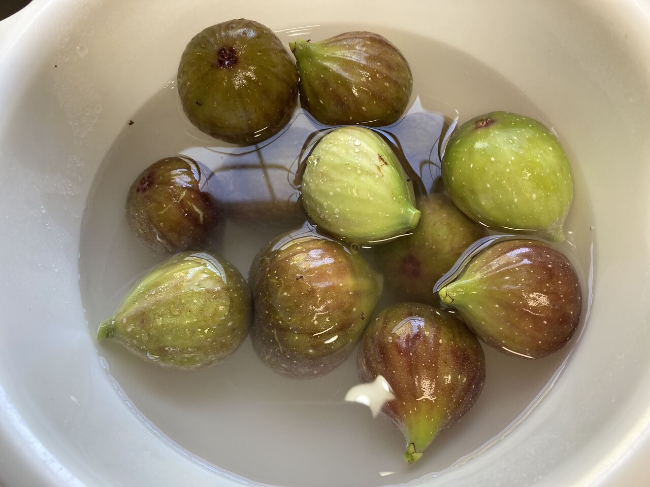 少しづつ慣れてきて、収穫する要領が分かってきた。イチジクは実を取る時、白い汁が根元から出る。べたべたして気持ちが悪い。最近は手袋をし、実の下に受け皿になるプラスティックのボールを構え、根元をカッターナイフでカットしてボールで受ける。こうすると手が汚れないでうまく取れる。それでもちょっと熟れた実に蟻が入っている可能性があるので、採った実を暫く水に漬けて蟻を追い出してからジャムの材料に。