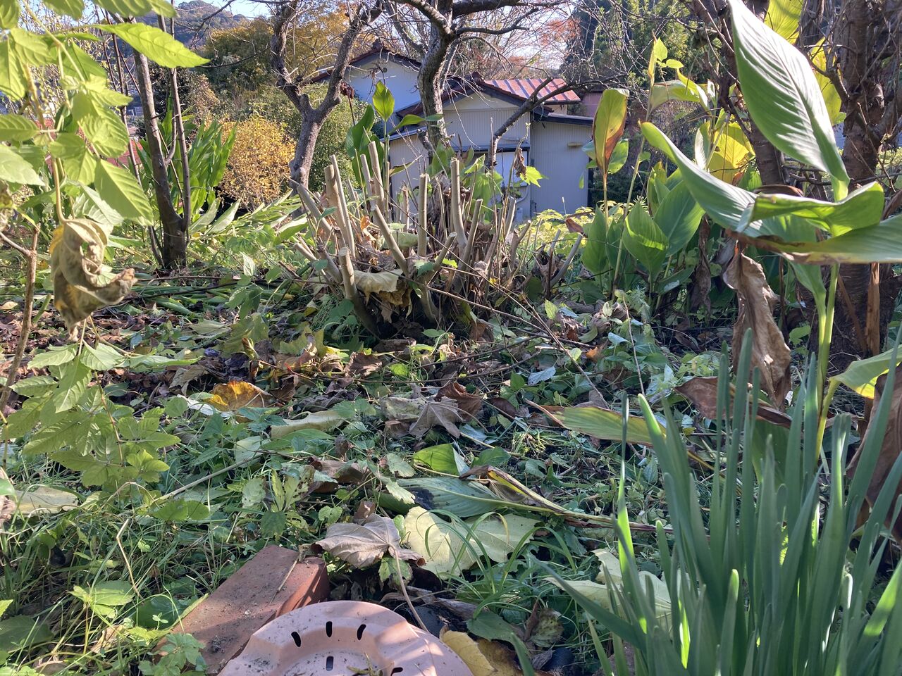 そのため、11月最終日に雑草刈りを実施。雑草を刈りこんだ他、長い間、楽しませてくれた酔芙蓉の枝を根元から切り、風通しを良くした。また今年ジャムが沢山作れた無花果そして蝋梅、マルメロは未だ手つかずになっている。