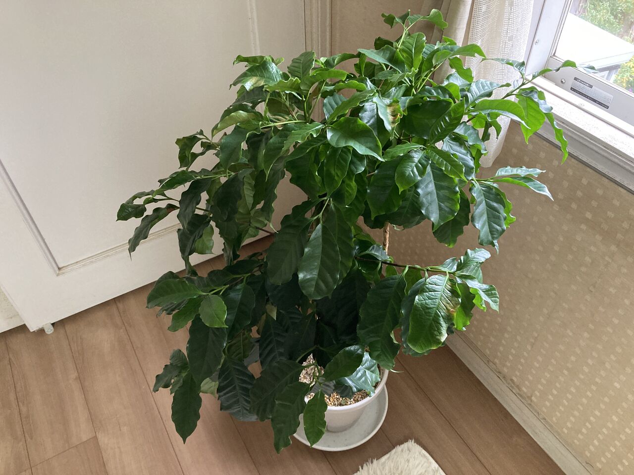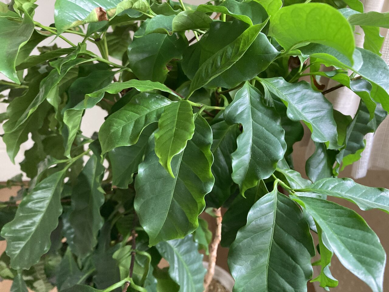 改めて育て方を見直してみたら、直射日光は避け、明るい間接光が基本。レース越しの光が最適だという。東向きの窓辺は特に相性が良く、葉が焼けにくいという。恐る恐る2階に運んだものの、環境はあっているようだ。後は肥料と水のコツを掴めば珈琲豆を見れる可能性が出て来た。