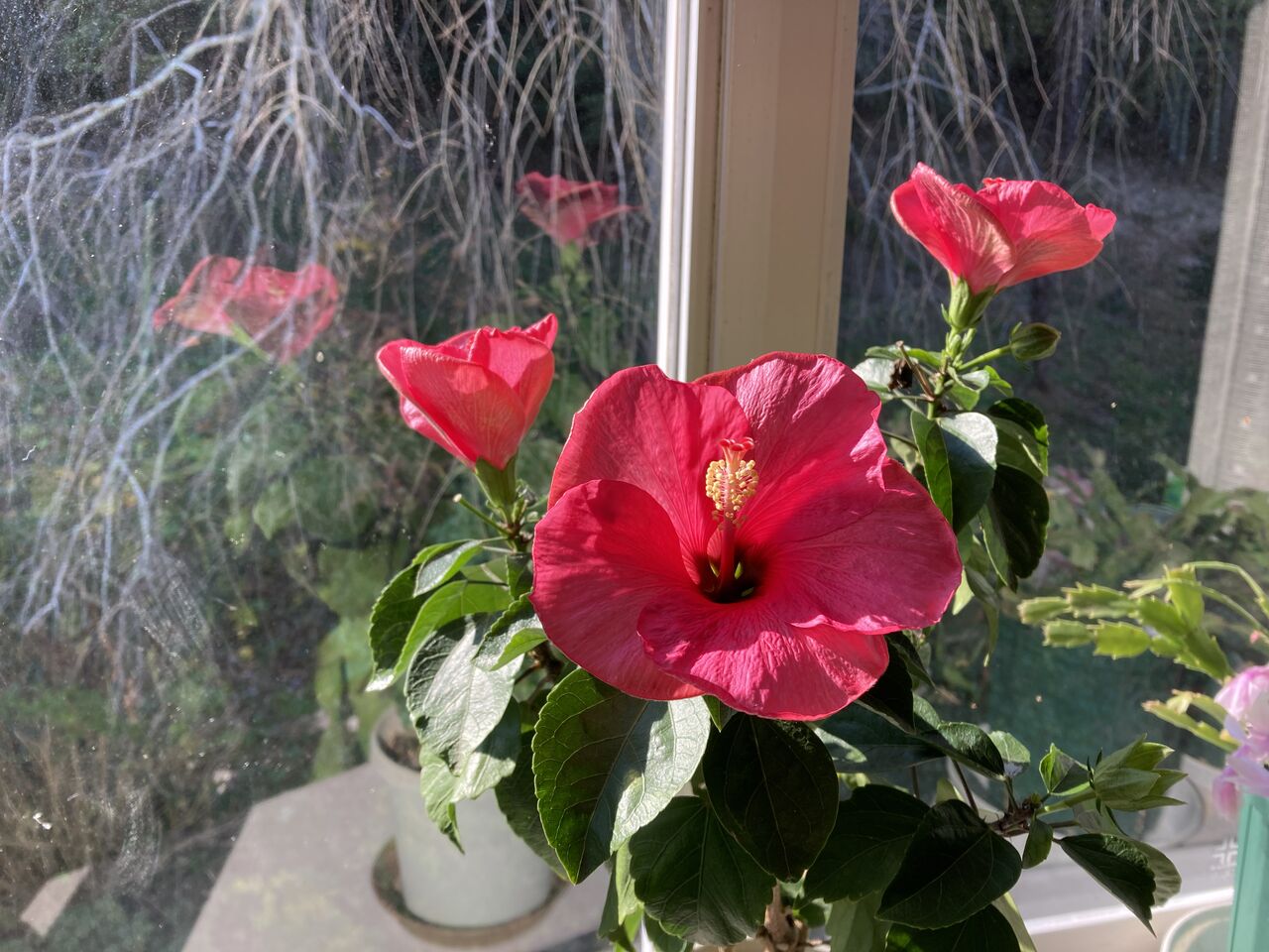 部屋の中で越冬するハイビスカスは今年は3鉢。我が家に来てから2年目から4年目の3鉢だ。