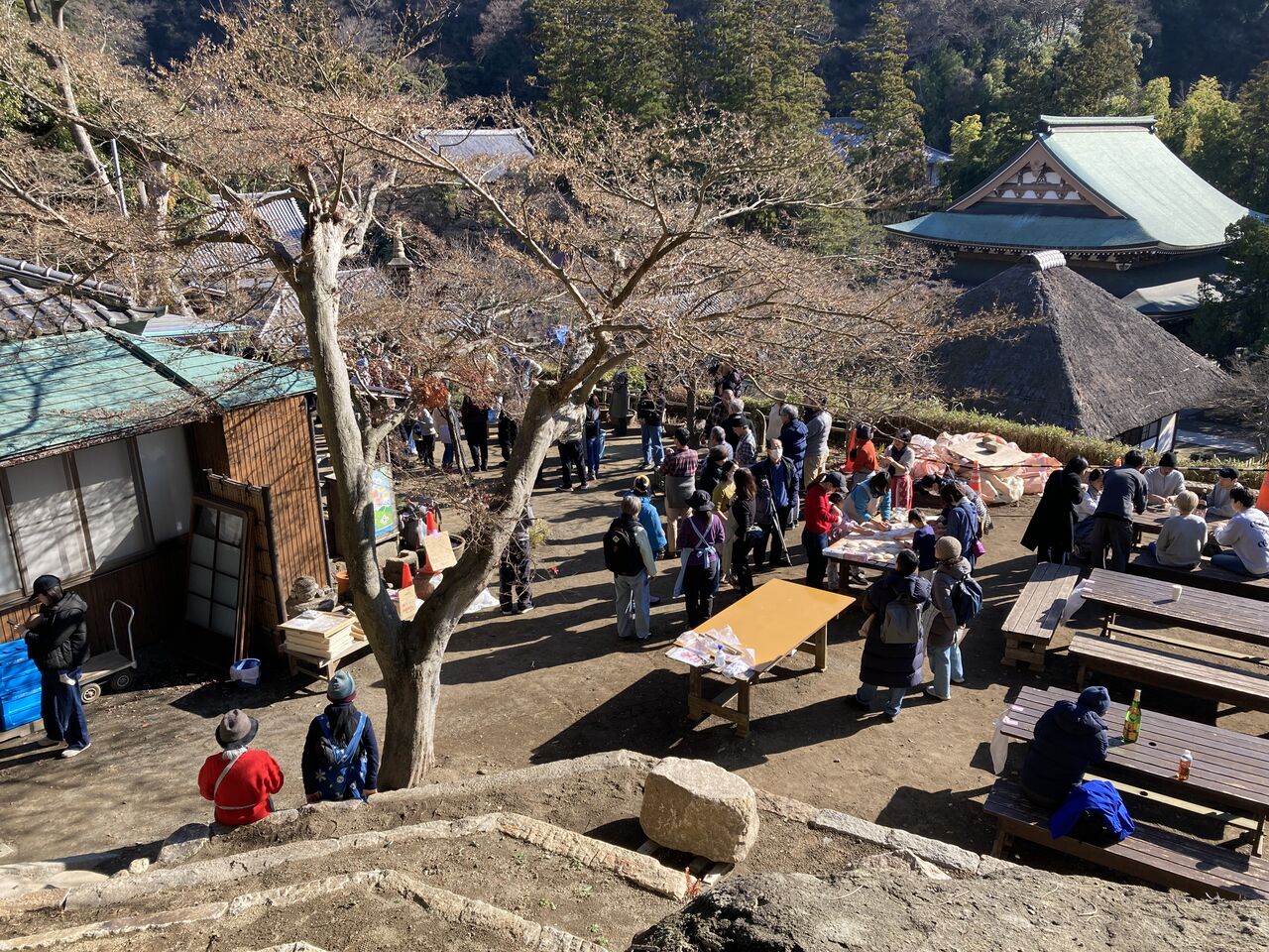 この餅つきは普段、お寺にお世話になっている色々なグループ、檀家さん、更に当日、観光で円覚寺に来られた方々も無料で参加OK。特にPRがされてもいないのだが今年は例年になく、知れ渡り400人を越える方々が楽しまれた。参加者はお餅つき体験が出来るだけでなく。つき立てのお餅も食べ、更に鏡餅も持ち帰れるという太っ腹イベント。