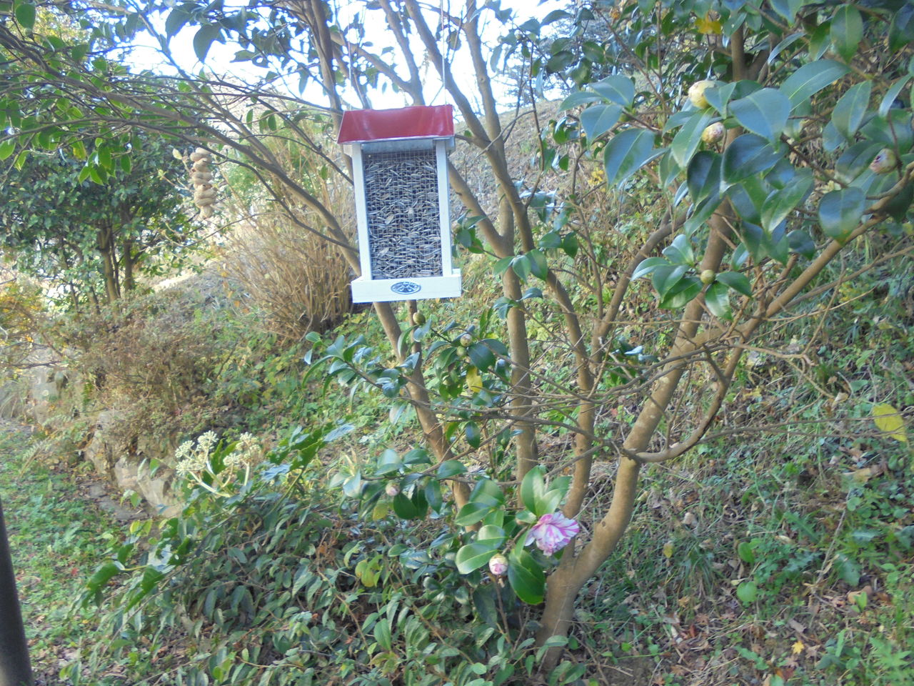 ひまわりの種とピーナッツネックレスは小鳥たちが食事をしたような形跡がない。いつになったら小鳥たちが気が付いてくれるのか焦るばかりだが、ここで慌ててはいけないとせっかちな自分に言い聞かせている。